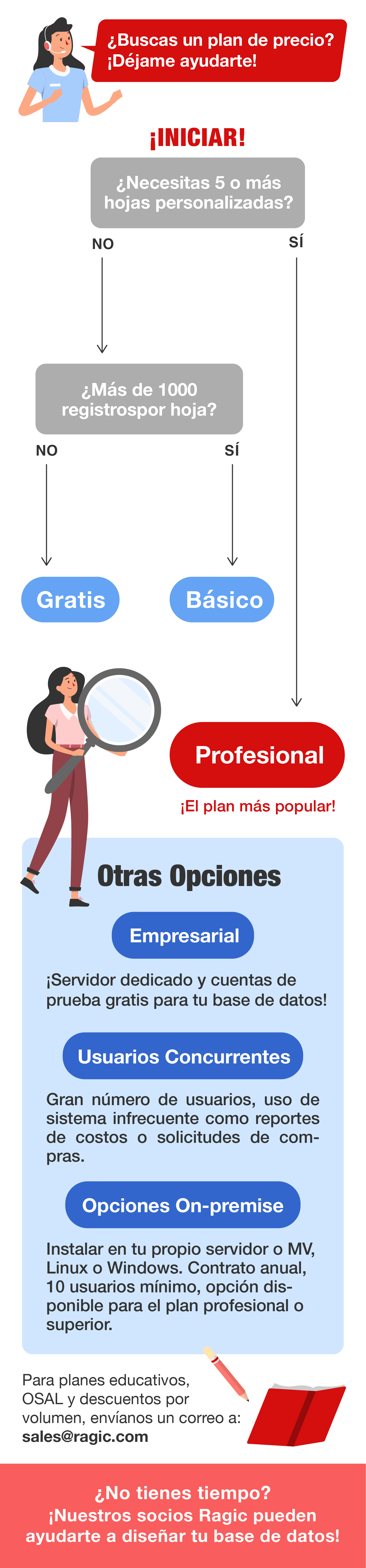 Ragic garantiza que si se realizan ajustes de precios los clientes actuales podrán elegir entre su plan anterior y el nuevo plan.
